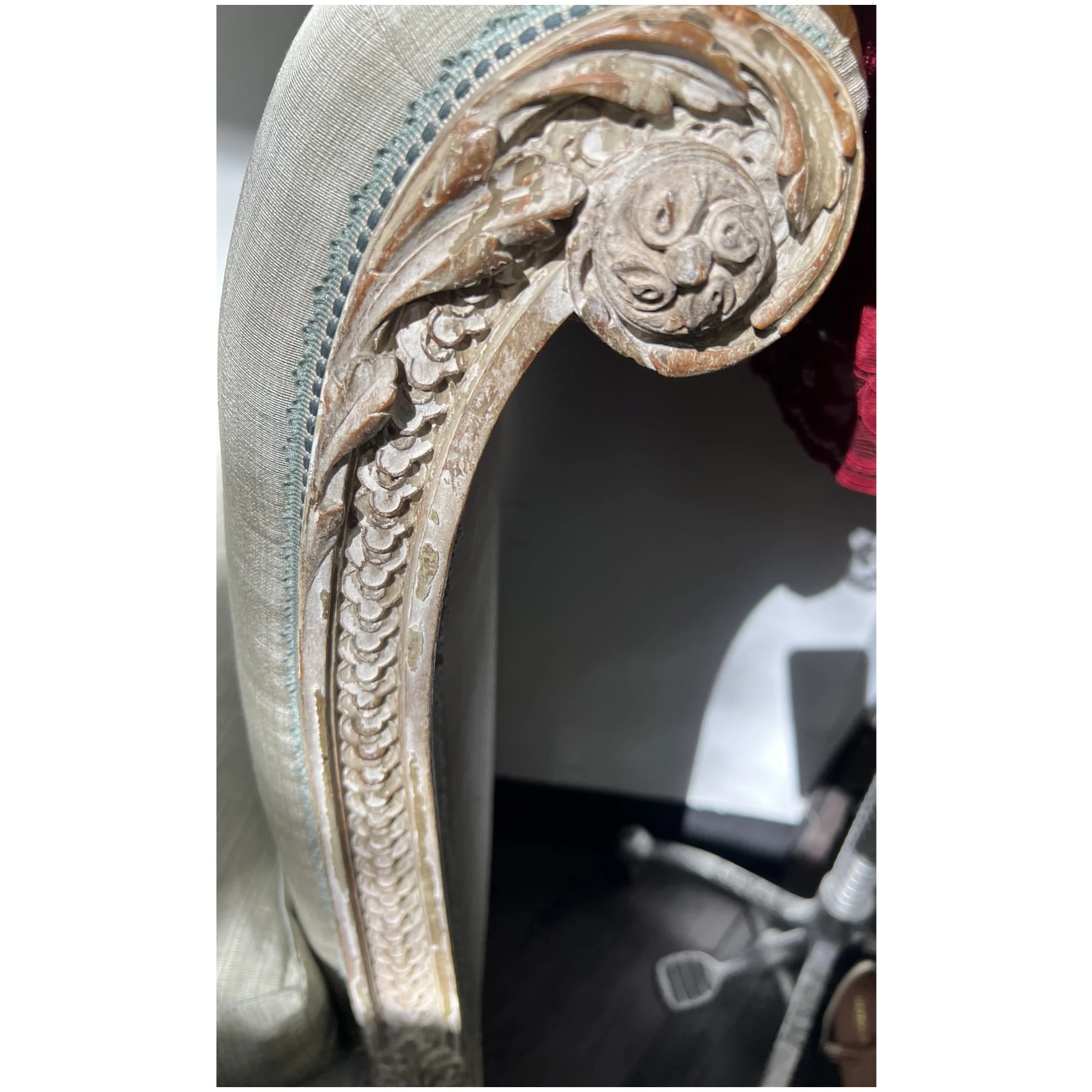 SEATING sendprint Beautiful early 20th century French Louis XVl style bench with painted and gilt wood frame.Dimensions: 57" wide x 18" deep 27" tall Price: $4,500